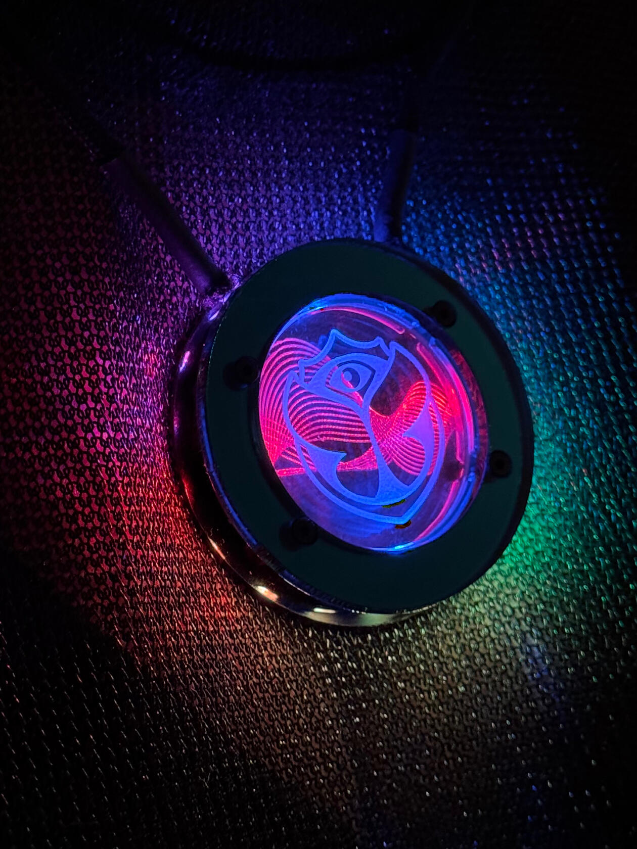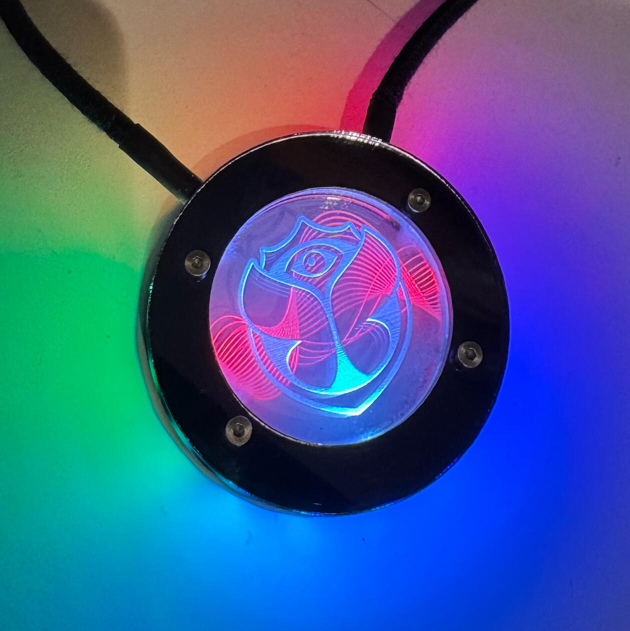 Each of the 100 Luma pendants is unique, crafted by hand from acrylic, a circuit board, PETG printed on a 3D printer, and fabric covered wire.The inspiration is the Tomorrowland festival itself with the background being sound waves that flow over.UNDER CONTRUCTION